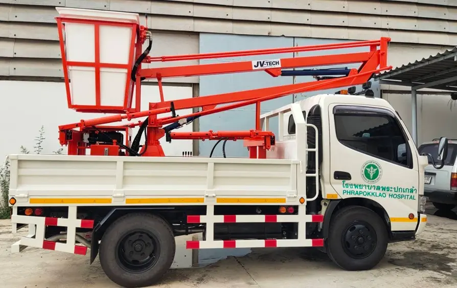 - ฐานกระเช้าติดตั้งอยู่ในกระบะตอนท้าย สามารถนำไปติดตั้งบนรถปิคอัพได้